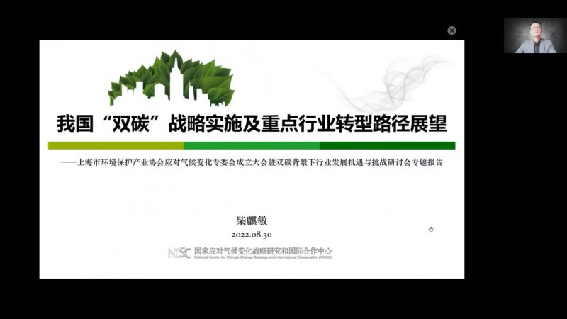 会议邀请国家气候战略中心战略规划部主任,清华大学现代管理研究中心兼职研究员,对外经贸大学绿色金融与可持续发展研究中心副主任、客座教授柴麒敏作主旨演讲。通过线上直播的形式,分享我国“双碳”战略实施及重点行业转型路径展望。