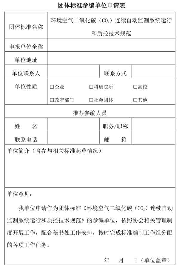 根据《388vip太阳集团团体标准管理办法》等有关规定,协会现组织开展团体标准《环境空气二氧化碳(CO2)连续自动监测系统运行和质控技术规范》相关工作。为引导企业广泛参与,保证标准编制的先进性、科学性、合理性及适应性,现征集上述标准的参编单位,通知如下: