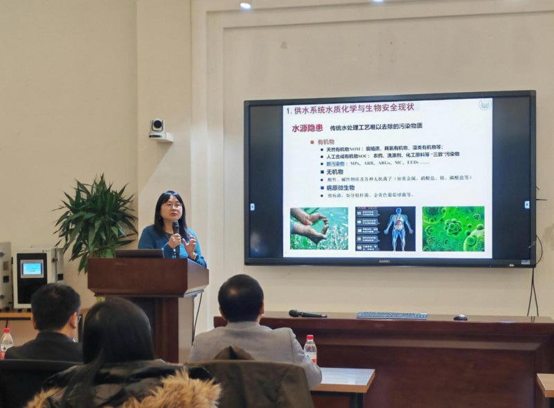 随后,来自不同领域的专家学者分别就各自的研究领域进行了精彩纷呈的演讲。同济大学环境科学与工程学院李伟英教授就《供水系统水质生物安全与高品质饮用水保障技术研究》发表了演讲,从现状与问题出发,探讨了供水行业的发展趋势、目标与任务,并对实施路径与方法进行了深入探讨。