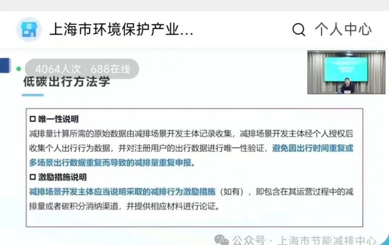 在此背景下,由应对气候变化专委会和上海市减污降碳管理运行技术中心共同主办,聚焦近期发布的《上海市碳普惠减排项目方法学 分布式光伏发电》等六个碳普惠方法学,以线上直播的形式进行宣贯介绍,共有1400余人,1000余家单位参与。市节能减排中心作为上海市环保产业协会应对气候变化专委会的主任单位,具体开展了相关培训的组织工作。