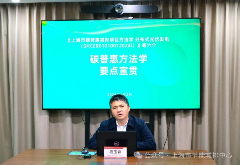 会上,上海市减污降碳管理运行技术中心段玉森副主任介绍了上海市碳普惠体系建设背景、《上海市碳普惠减排项目方法学 分布式光伏发电》等六个碳普惠方法学以及本市碳普惠方法学开发与申报的要点事项等。在交流答疑环节,与会者积极提问,段主任均予以一一解答。