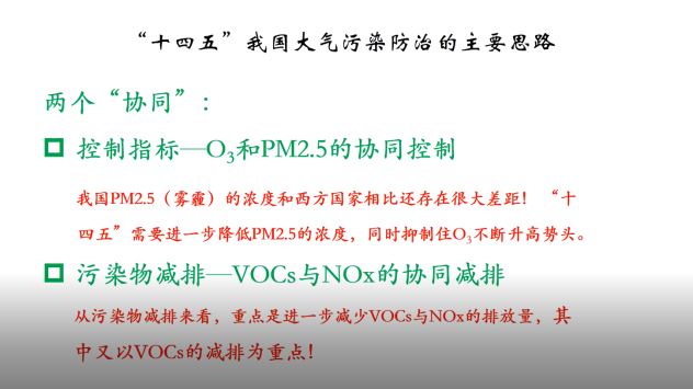 栾志强研究员受邀做了《“十四五”VOCs管控要求与深度治理工艺选择》专题报告。报告中回顾了“十三五”以来,VOCs治理的取得成果及存在的一些现实问题,分享了喷涂行业常见治理工业和技术路线选择考虑因素,重点介绍了“十四五规划”的主要思路,强调了“两协同”即“控制指标O3和PM2.5协同”和“减排污染物VOCs和NOx协同”。
