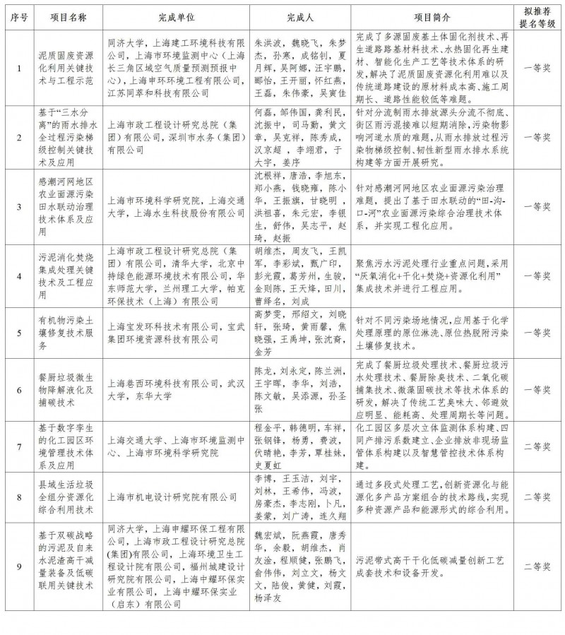 2024年度388vip太阳集团拟推荐环境技术进步奖提名项目汇总表