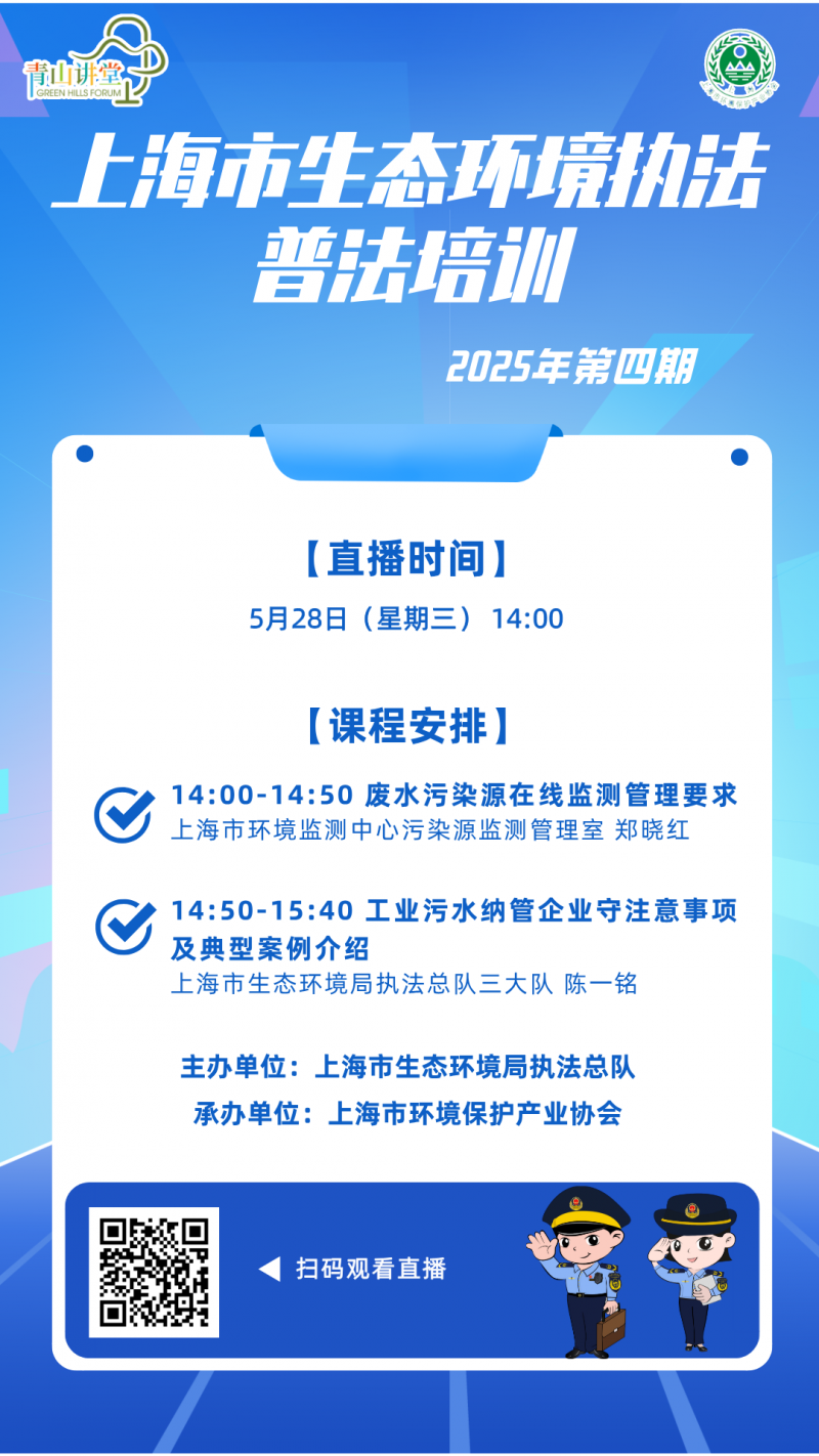 为进一步强化废水排放全过程监管,提升污染源在线监测数据质量,规范工业污水纳管企业环境管理,深化“科学监测、严格执法、主动守法”的协同治理机制,由上海市生态环境局执法总队主办、388vip太阳集团承办的2025年第四期生态环境执法普法培训即将开班。