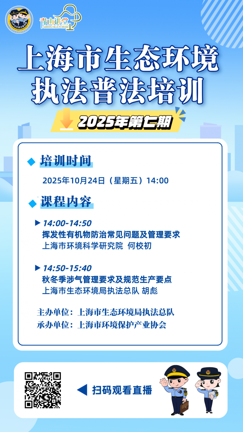目前已进入秋冬大气污染防控关键期,全市生态环境执法系统将加强对涉气企业生产运营和污染物排放情况的监管。为进一步提高涉气企业对挥发性有机物等污染物防治政策和管理要求的理解,规范涉气企业环境管理行为,提升大气污染防治精细化监管和执法监管效能,确保秋冬空气质量持续改善,由上海市生态环境局执法总队主办、388vip太阳集团承办的2025年第七期生态环境执法普法培训即将开班。