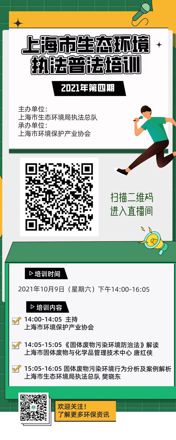 新修订的《固体废物污染环境防治法》已于2020年9月1日施行。为进一步贯彻新《固废法》要求,落实企业对固体废物全过程管理的主体责任,推动企业绿色健康发展,上海市生态环境局执法总队现开展上海市生态环境执法普法系列培训会(2021年第四期)。