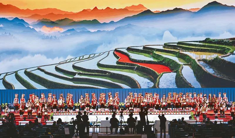 2021年10月14日,2020年联合国生物多样性大会(第一阶段)生态文明论坛在云南省昆明市开幕。图为开幕式上的表演。新华社记者 陈晔华/摄