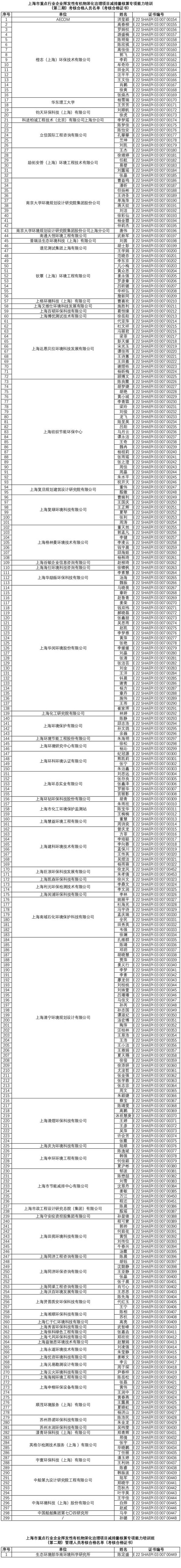 获得证书名单见附件1和附件2。期待各位在上海VOCs2.0推进业务工作中发挥引领作用。